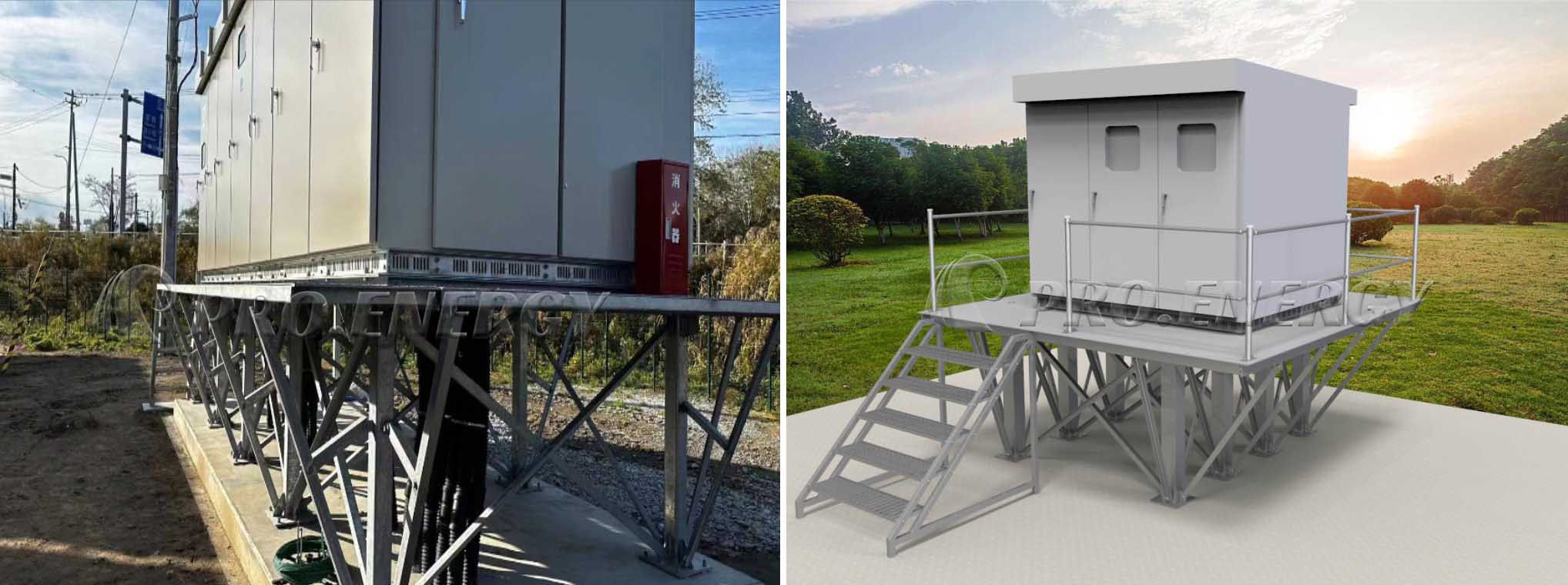 PROFENCE.ENERGY 提供变压器支架,该支架专门设计用于抬高变压器设备,并可用作防水平台。